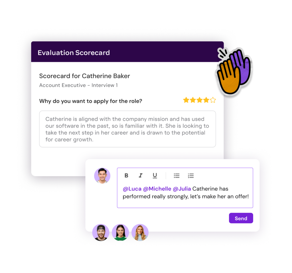 Forget messy spreadsheets, shared logins and forgotten details. Collaborate with hiring managers to review candidates and establish custom hiring processes in one place.